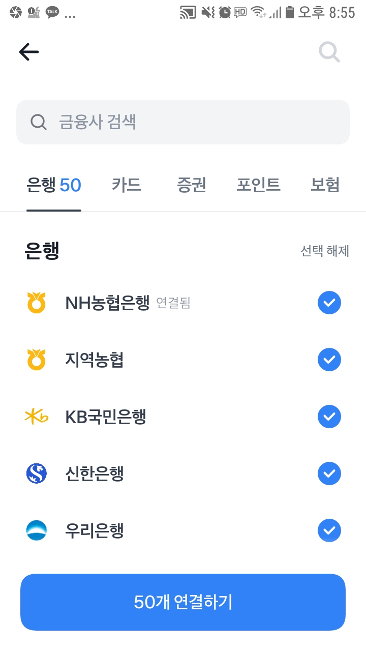 그 다음은 계좌를 연결하는 작업입니다. 50개의 계좌를 연결해야 작업을 진행할 수 있기 때문에 연결하기를 클릭합니다.