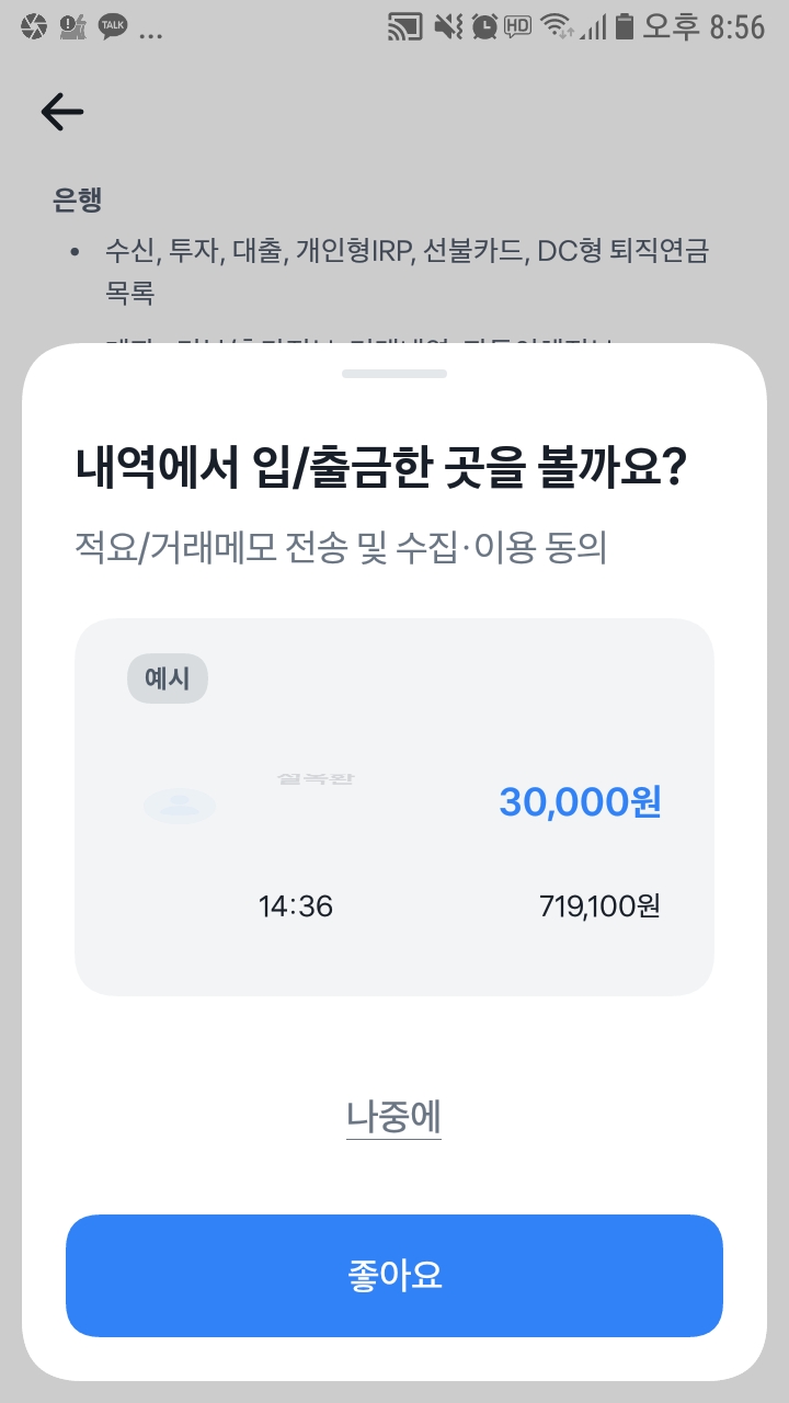 토스에서 여러 은행으로 정보를 보내고 연결합니다.